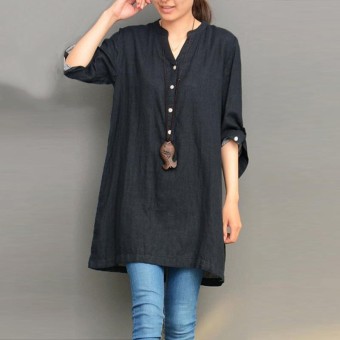 | Nama Product | Zanzea 2018 Spring Wanita Panjang Lengan Tombol Solid V Leher Blus Kasual Atasan Baggy Kantor Kerja Lady Retro Kemeja Longgar PLUS Ukuran Lebih Hitam-Internasional |